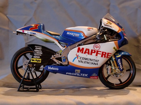 2009年11月15日に横浜の赤レンガ倉庫で開催されたホビーフォーラム2009にて、アプリリアの250cc GPマシーンの完成品が集まりました。参加された方々、お疲れ様でした!![]() ズラ〜っと揃ったアプリリア250cc GPマシーン! ![]() これだけアプリリアの完成品が集まるのも珍しいと思います(笑) ![]() 今回の会場が暗かったので、写真がイマイチでスミマセン・・・(汗) ![]() nobuさんの98ロッシ号、イモラスペシャルカラーバージョン。フレームがメタルに置き換えられており、自作デカールでスペシャルカラーを再現してます。 この自作デカールはnobuさんから購入することが可能です。詳しくは→コチラ、nobuさんまで! ![]() ケンジローさんの98ロッシ号。今話題の(?)ハセガワのメタルシートを張り込んでます。本物のバフがけフレームみたい。 こんな凸凹の入り組んだパーツにも馴染んで貼れるそうです。 ![]() スギモトさんの07デアンジェリス号。なかなかシブイとこ突いてますね。白と青のカラーリングが新鮮です。 ![]() KAZUさんの09ロカテリ号。短期間でシモンチェリ号と共に2台一気に製作!相変わらずキレイに仕上がってます。 ![]() 99ロッシ号、イモラカラー。デカール貼るの面倒そう・・・(笑) こちらの自作デカールもお問い合わせは→nobuさんまで! ![]() この06ロレンソ号はハセガワのメタルシールを切り抜いて、メタリック調のゼッケンを再現しているそうです。 確かに付属のデカールのゴールドより、コッチの方がリアルだな〜 ![]() このビアッジ号のゼッケンもハセガワのメタルシート。 今までのメタル調デカールはクリアーをかけると、シワが寄ったり縮んだり問題がありましたが、このシートは上からクリアもかけられるそうです。ハセガワのメタルシート、なかなか使えるかも。 ![]() KAZUさんと私で、08&09シモンチェリ号揃い踏み! |
