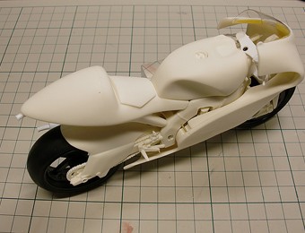 いつもの通り図面を描き、それを元に原型を作っていく。全体的なフォルムは250ccマシーンと似ているが、各部形状が結構異なっている。
