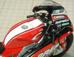 完成!なかなかカッコイイカラーリングだな〜。アプリリアのサテライトチームのカラーリングとしてはズバ抜けてカッコ良いと思う。 |
