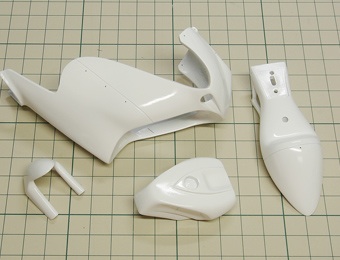 シルクスクリーン印刷のデカールを貼って、クリアーコート。シートカウルのカーボン地の部分はカーボンデカールを貼った。
