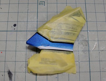 サイドカウルは、グラフィックデカールを先張りして、一回クリアーを吹く・・・