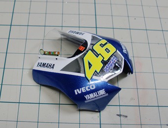 既に他のデカールを貼り、クリアー塗装を施したカウルに・・・