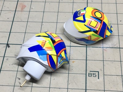 次はデカールを貼っていく。ヘルメットからスタート。