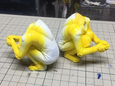 ボディーの方は、黄色と青をエアブラシでだいたい塗装。