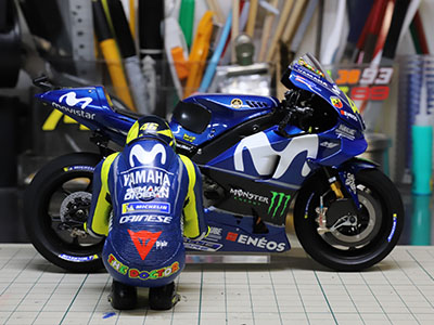 よく確認してみると、ロッシは毎回右側からバイクに乗車するようで、コッチ側(バイクの右側)が正しい位置のようだ。