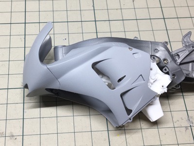 アッパーカウル→サイドカウル→アンダーカウルの順でカウルを装着。ウィングがあるので、チョット面倒。