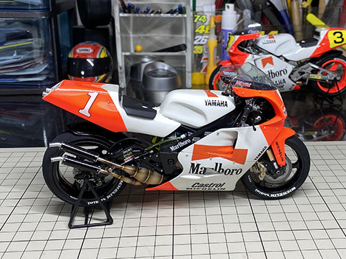 アタシのNo. 1ヒーロー、ウェイン・レイニーの'92 YZR500の製作だ。