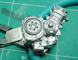 エンジン左側も改造して乾式クラッチ風(笑)に改造した。