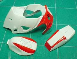 マスキングして赤い部分を塗装。