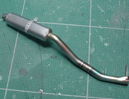 エキパイ部分に焼け跡風塗装。この時代のサイレンサーってアルミなんだな〜。なんか新鮮。