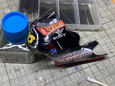 クリヤー塗装と、ペーパーがけを繰り返し、デカールでの段差の無いピカピカのカウルを作る。