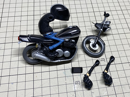 で、ちょうど空冷四気筒のKZ650ザッパーがあったので、コイツを芯にして、自分が乗ってるZEPHYER 1100を作ってみることにした。